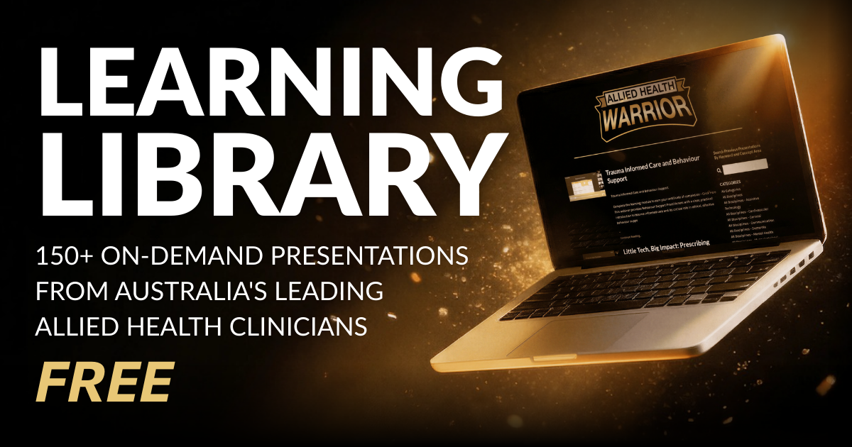The Allied Health Warrior Learning Library gives you instant access to recordings from live presentations, case conferences, and topic discussions, all delivered by practising clinicians who understand your work.